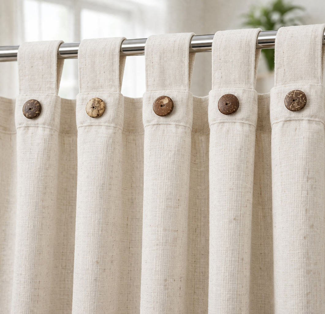 CORTINA AMBIENTE RAFIA CRUDA C/ BOTON 1.40 X 2.10